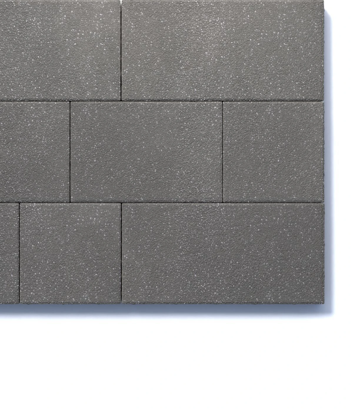 Состоит из 3-х элементов, которые выкладываются в хаотичном порядке рядами. Изготавливается по уникальной технологии методом полусухого вибропрессования из бетона. Поверхность выполнена с оригинальной зернистой фактурой серого цвета. Натуральная гранитная крошка в лицевом слое изделий наделяет плитку приятной шероховатостью, а также устойчивостью к скольжению. Брусчатка Трио отличается высокой износостойкостью и практичностью в эксплуатации.