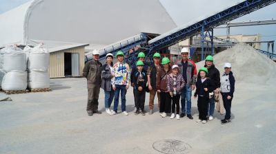 Знакомство началось со склада инертных материалов, ребята увидели из чего делают продукцию. А далее посетили сам завод и цех с оборудованием. Дети с интересом наблюдали за процессом производства тротуарной плитки, узнали о различных технологиях, используемых на заводе.