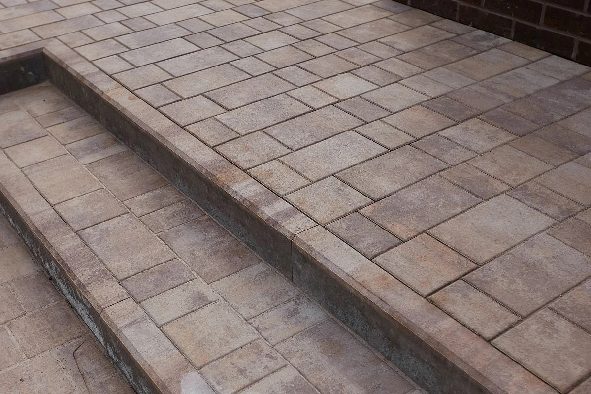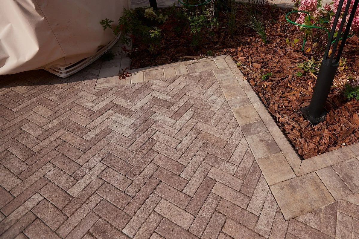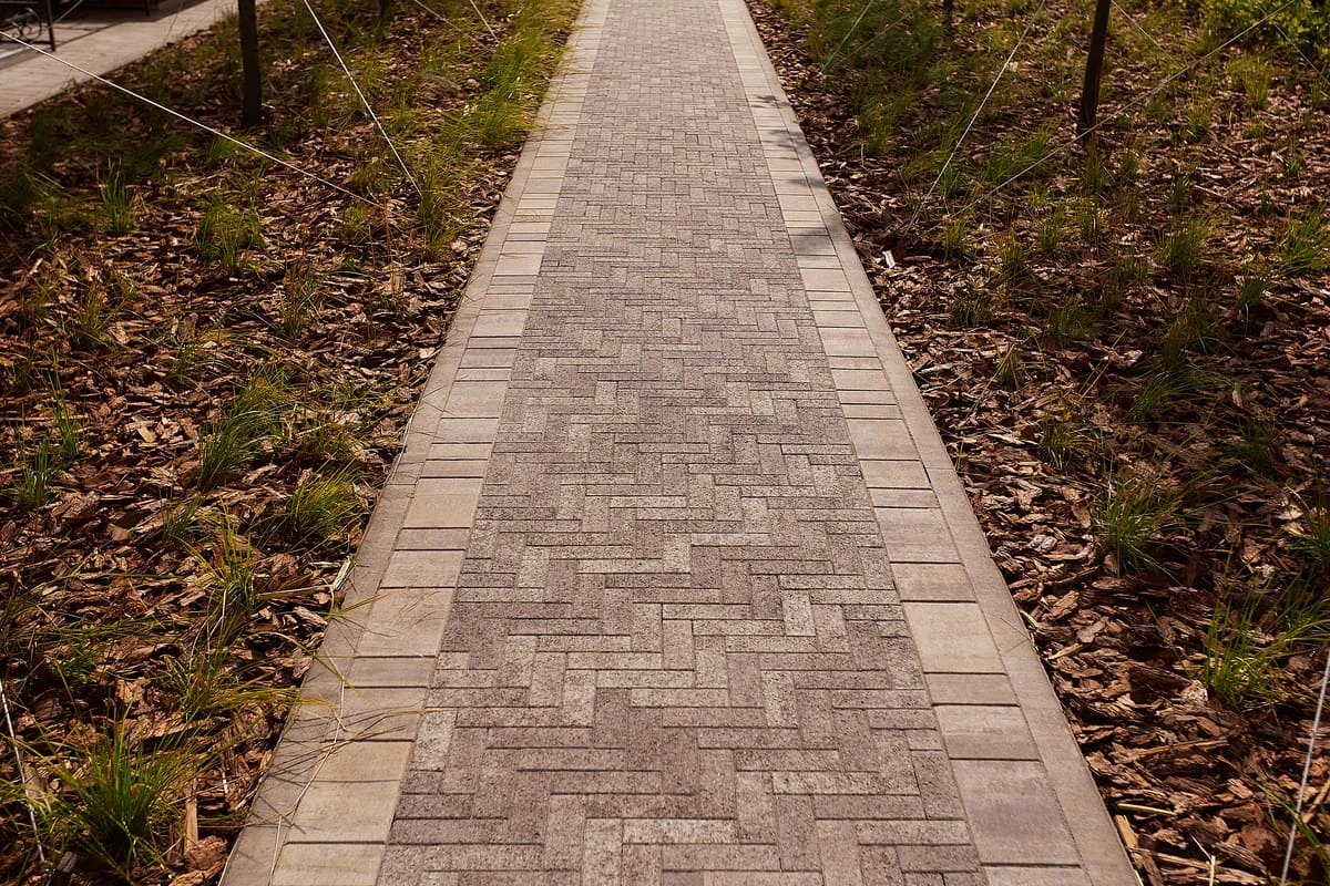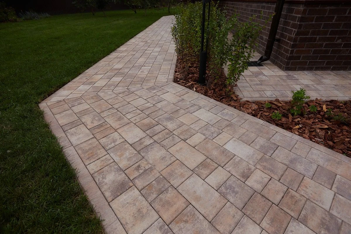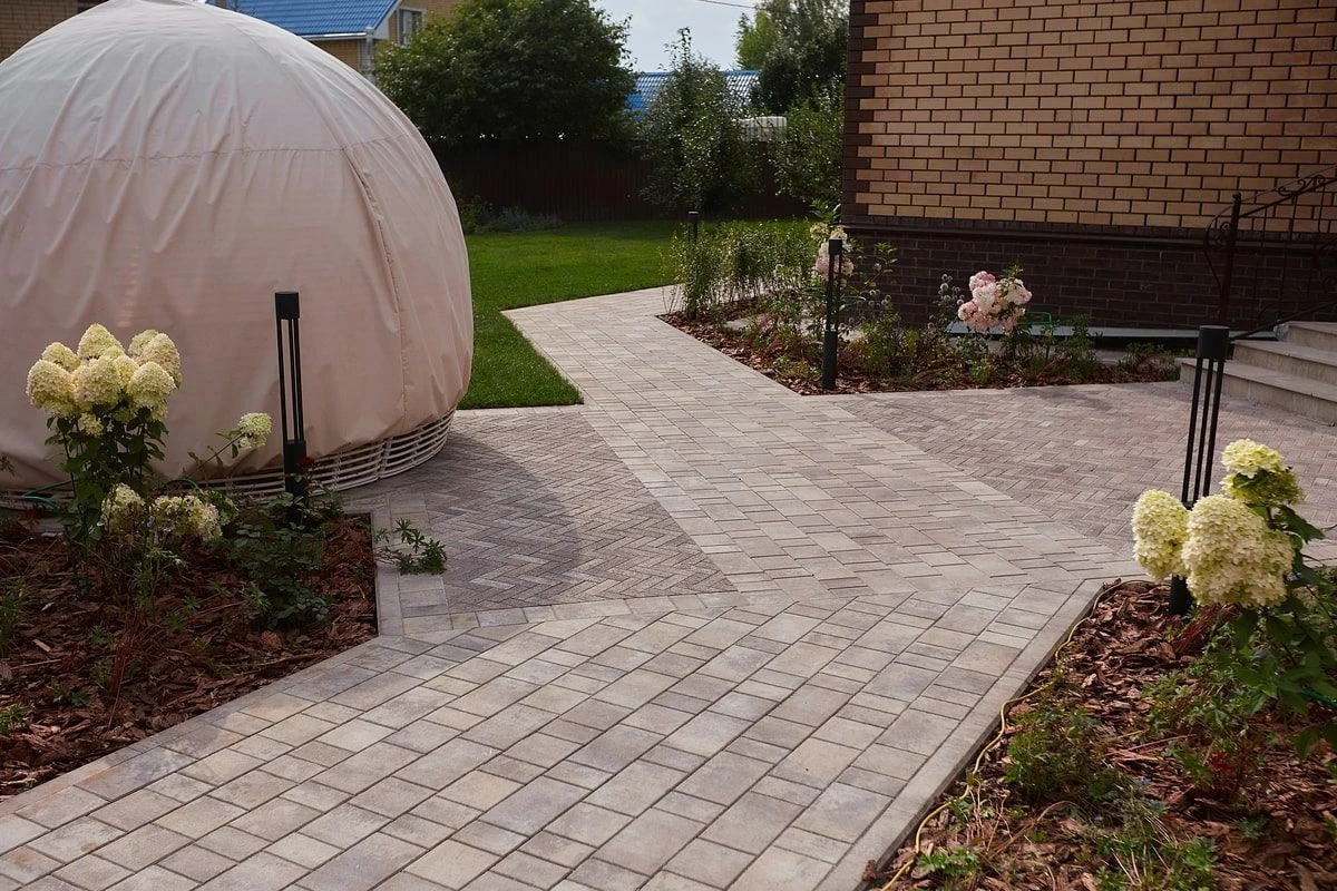 Ландшафтный дизайн участка с укладкой плитки Старый город и Паркет 180х60 в Тюмени