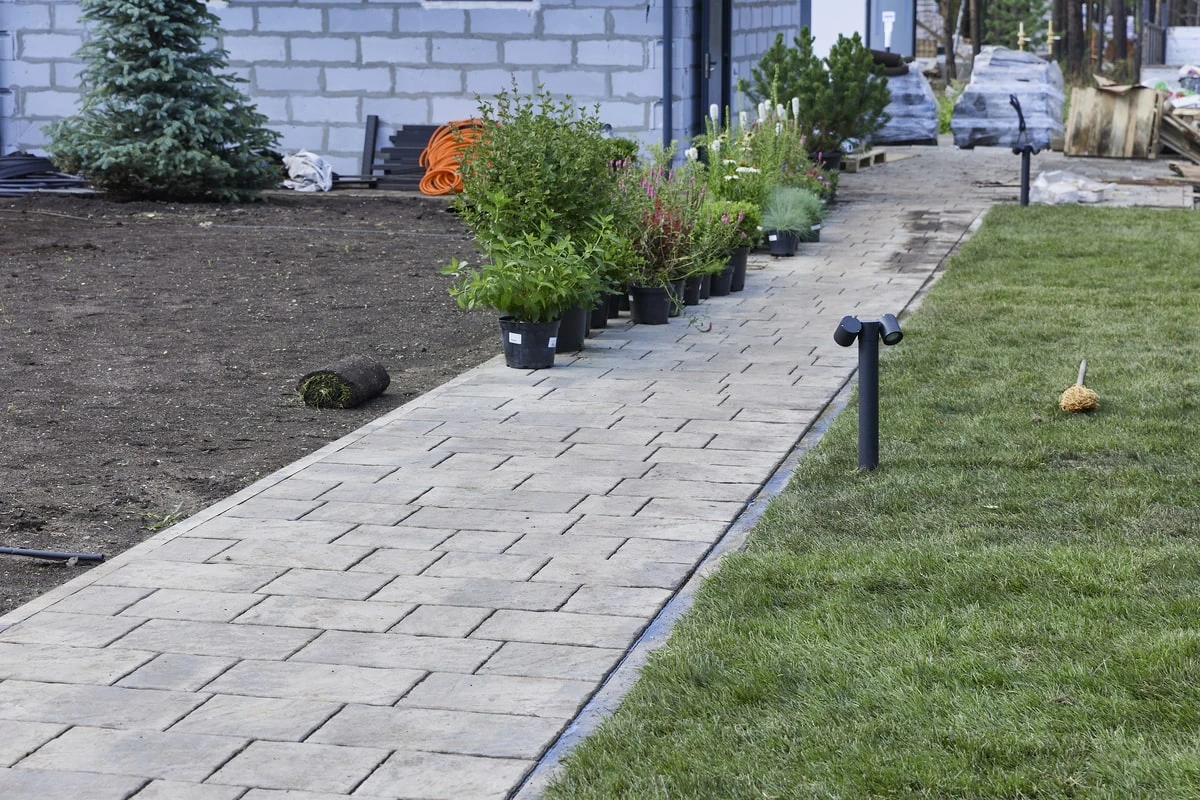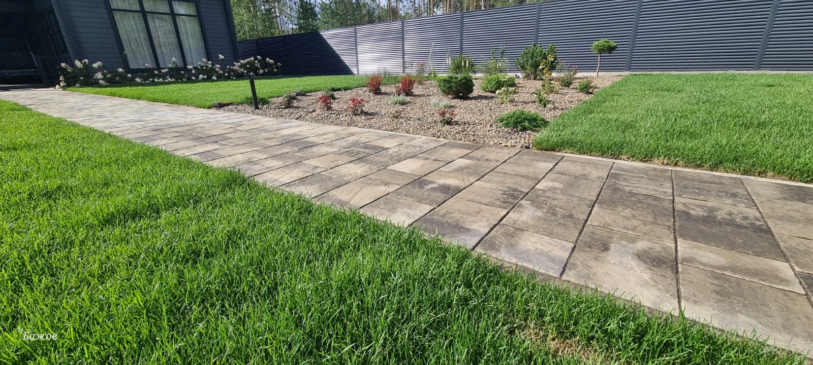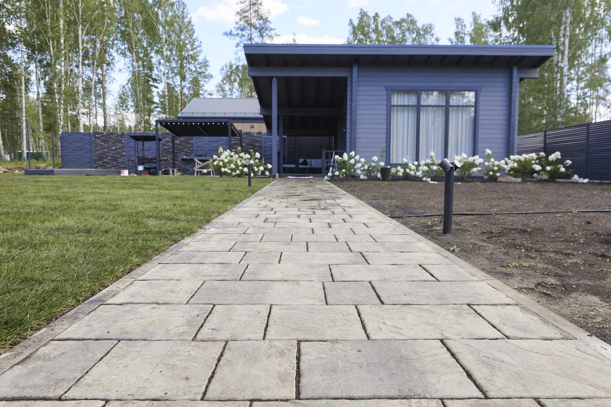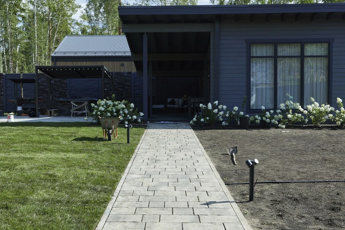 • Благоустройство дома: плитка в цвете Антрацит и шаговые дорожки