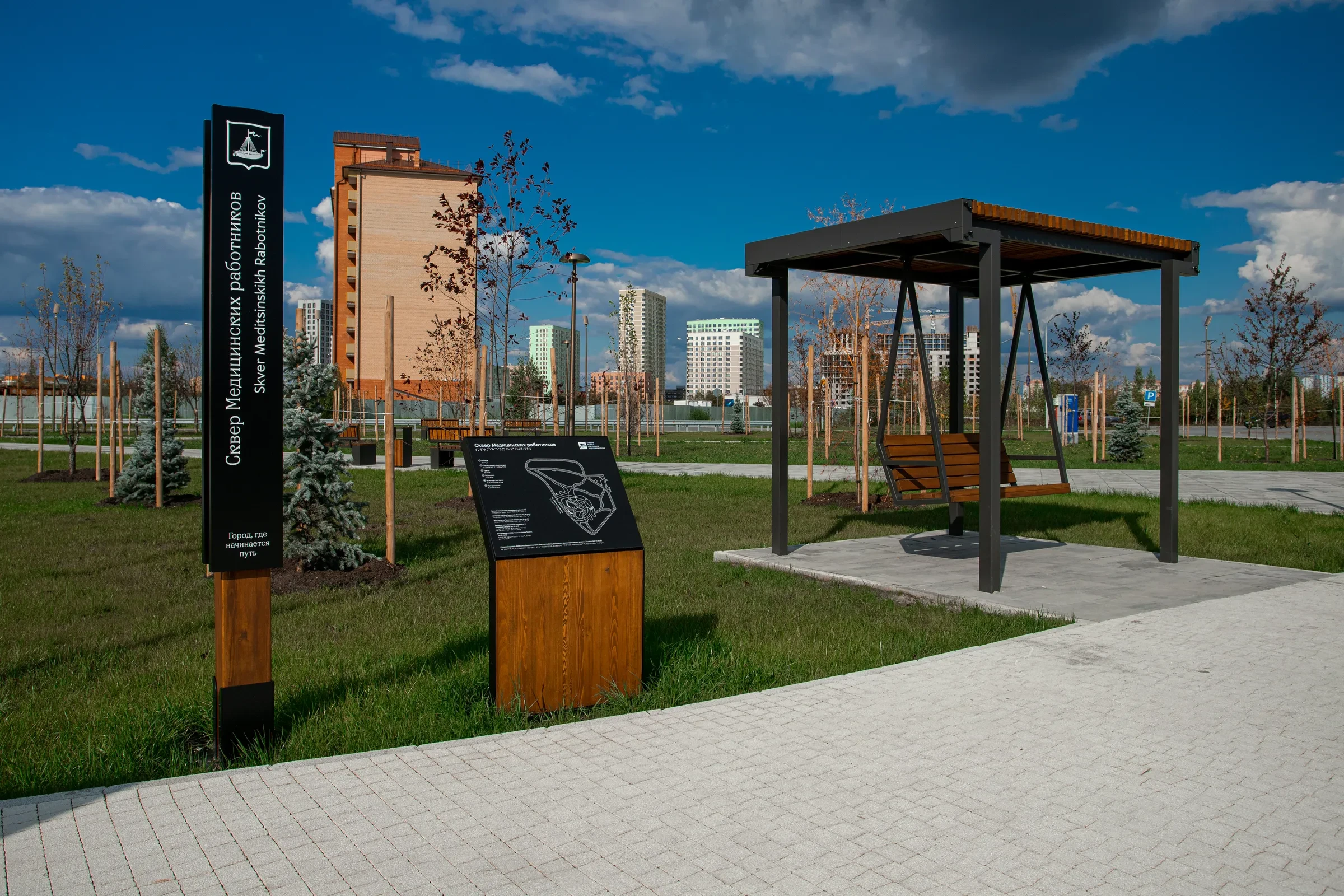 Общественное пространство появилось в центре медицинского кластера города — на месте бывшего пустыря. Площадь благоустроенной территории составила почти 8 000 кв. м. Центральное место в сквере заняла скульптурная композиция, посвящённая медикам.