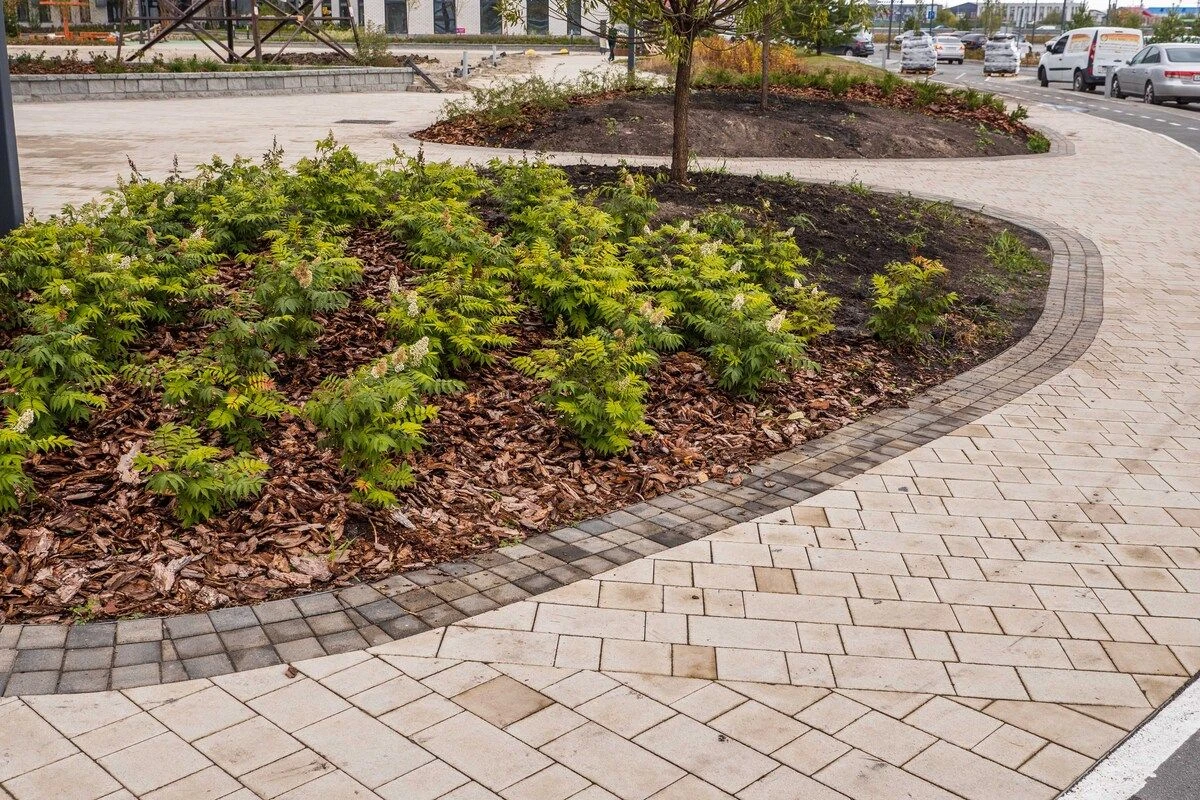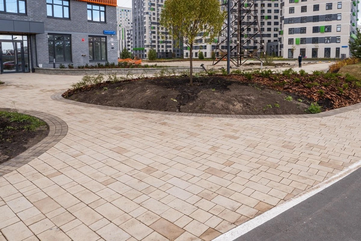 Проект выполнен в ЖК Колумб для внутренней и внешней отделки территории комплекса. Основный материал — тротуарная плитка «Старый город» в цветах Доломит и Степняк, которые визуально отделяют зоны друг от друга, а также служат контрастом от асфальтированной территории.